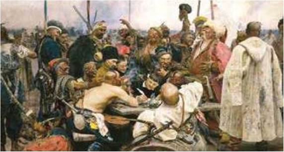 2. Художник Ілля Рєпін якось почув розповідь про лист-відповідь запорожців турецькому султану. Козаки в образливій формі відповіли на пропозицію султана Мехмеда IV прийняти мусульманство та перейти до нього на службу. Рєпін відтворив процес написання легендарного листа на полотні.