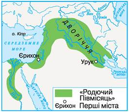 «Родючий Півмісяць» — регіон на Близькому Сході, що включає частину Західної Азії та Північної Африки, один із первісних центрів зародження землеробства.