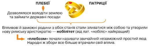 Важливим для Римської Республіки стало поступове зрівняння в юридичних правах плебеїв і патриціїв.