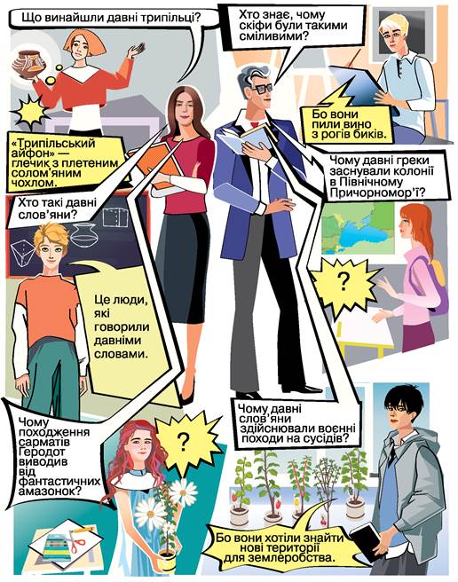 • Які факти з давньої історії України вам найбільше запам’яталися з вивченого в 6 класі? Який найцікавіший факт з історії вам вдалося з’ясувати протягом літніх канікул?