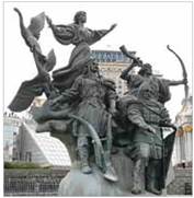 Пам’ятник засновникам Києва (скульптор — Анатолій Кущ, архітектори — Олександр Комаровський і Олег Стукалів; майдан Незалежності, м. Київ, 2000 р.)
