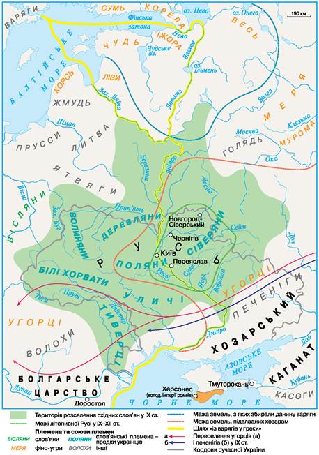 - на Лівобережжі (басейни річок Десна, Сейм, Сула, Ворскла) — сіверяни;