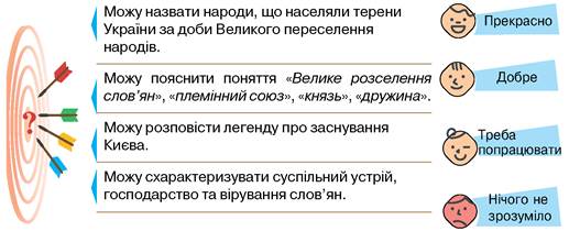 Оцініть свої успіхи в опануванні теми «Велике розселення слов’ян. Господарство та суспільство слов’ян».