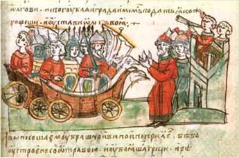 Штурм Олегом Царгорода (малюнок із Радзивіллівського літопису кінця XV ст.)