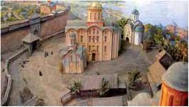 Михайлівський собор у Києві (фрагмент діорами «Місто Ізяслава-Святополка», кінець XII ст.)