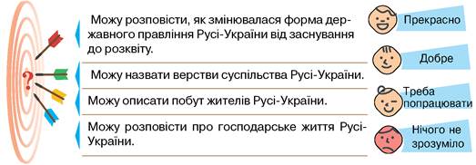 Оцініть свої успіхи в опануванні теми «Політичний устрій, суспільне, господарське та повсякденне життя Русі-України».