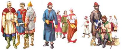 3. Розгляньте реконструкції одягу русів, виконані художницею-етнографинею Зінаїдою Васіною. Визначте за одягом представників різних соціальних спільнот. Аргументуйте свій вибір й складіть опис зовнішності представника/представниці однієї з верств населення.