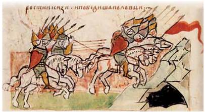 Битва на річці Альта, 1068 р. (малюнок із Радзивіллівського літопису кінця XV ст.)