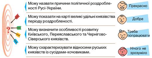 Оцініть свої успіхи в опануванні теми «Роздробленість Русі-України (середина XII — перша половина XIII ст.). Київське, Чернігівське та Переяславське князівства».