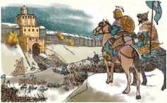 • Ознайомтеся з документом і розгляньте ілюстрацію. Складіть розповідь від імені одного з учасників оборони Києва 1240 р.