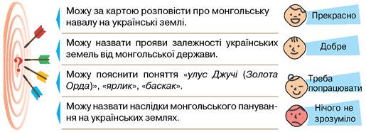 Оцініть свої успіхи в опануванні теми «Монгольська навала на українські землі. Утворення улусу Джучі (Золотої Орди)».