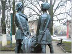 Пам’ятник молодим князям Данилу і Васильку в м. Володимирі на Волині (робота скульпторки Теодозії Бриж, 1988 р.)