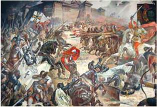 Розгром загонів хрестоносців військом Данила Галицького під Дорогочином у 1238 р. (картина художника Станіслава Серветника)
