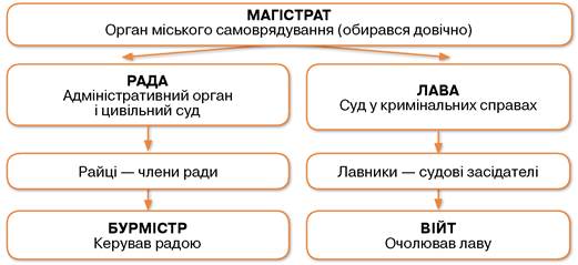За магдебурзького права міщани шляхом виборів формували орган міського самоврядування — магістрат.