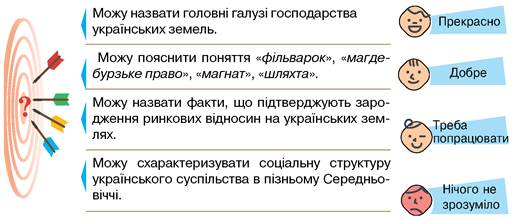 Оцініть свої успіхи в опануванні теми «Господарство українських земель у XIV-XV ст. Українське суспільство. Магдебурзьке право».